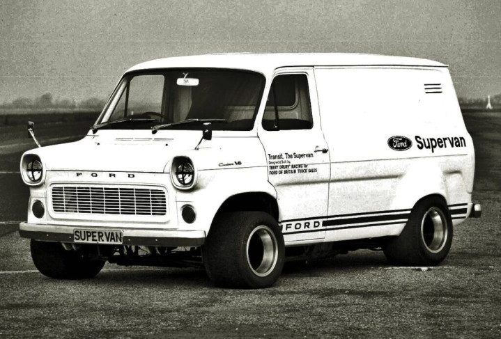 第一代Supervan诞生于1971年,它本质上是一辆“外壳移植”的GT40。那时候普通Transit厢式车用的还是Essex V4发动机,而Supervan却塞入了一台由Gurney-Weslake工程团队调校的302小排量V8中置发动机,最大功率435马力,峰值扭矩约542牛米,配合5速手动变速箱,百英里加速仅需21.6秒,极速理论值可达270公里/小时。要知道,彼时大部分人眼中的Transit不过是普通商用车,而这辆“披着工装外衣”的怪兽已经具备超跑实力。
